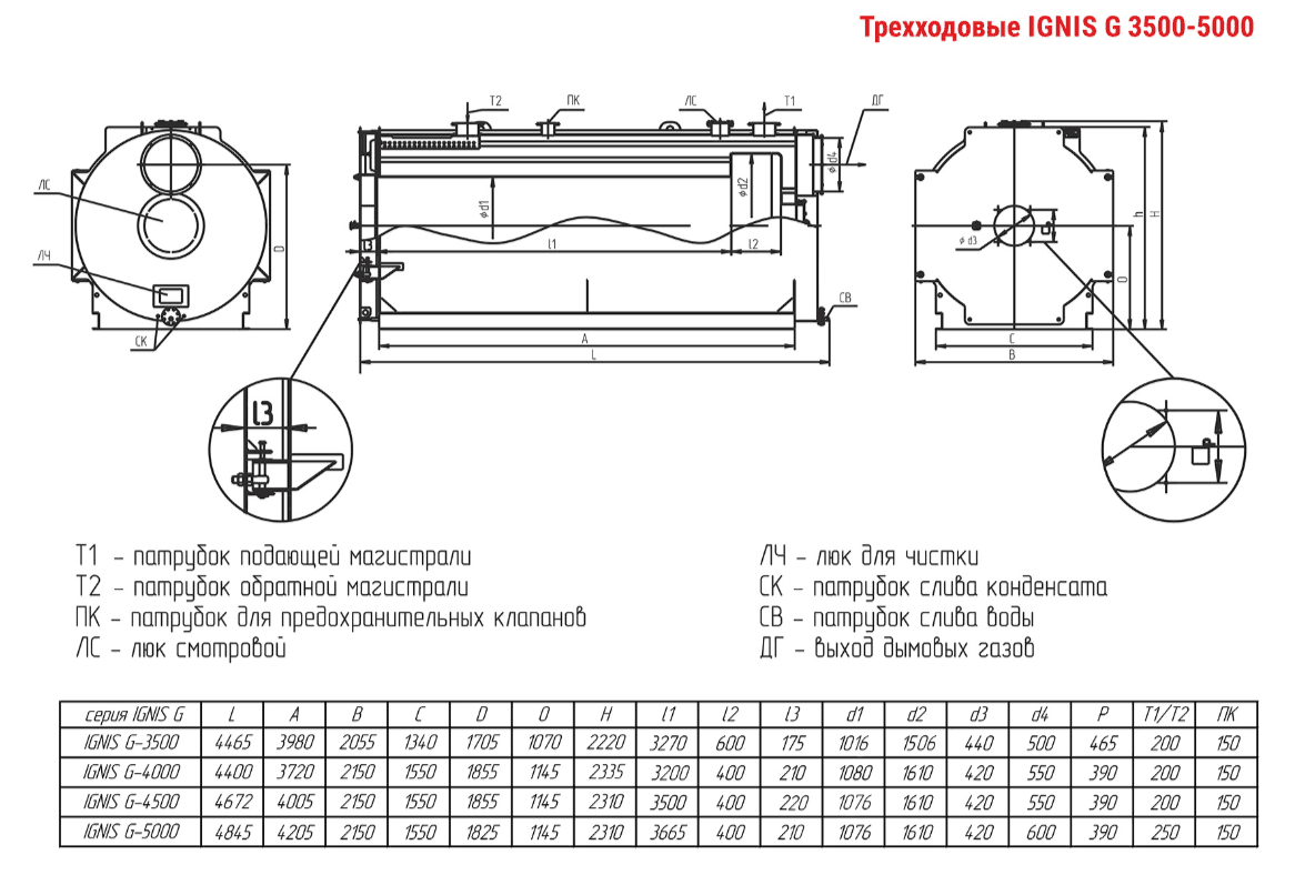 Технические характеристики водогрейного трёхходового котла ARCUS IGNIS G-4500