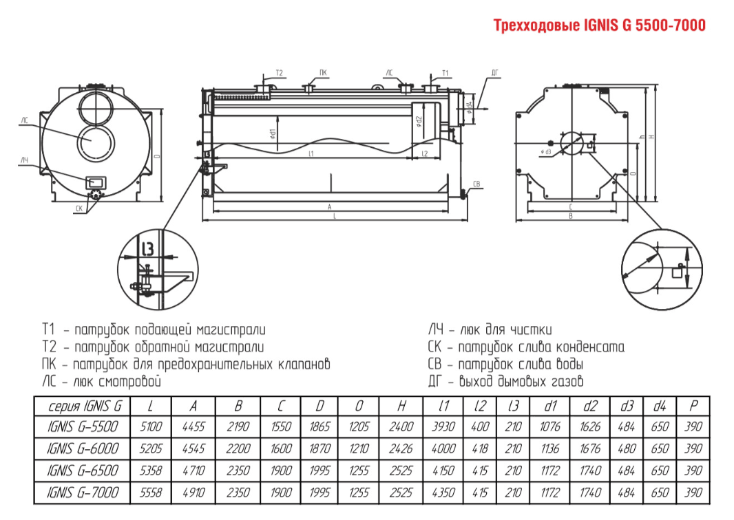 Технические характеристики водогрейного трёхходового котла ARCUS IGNIS G-6500