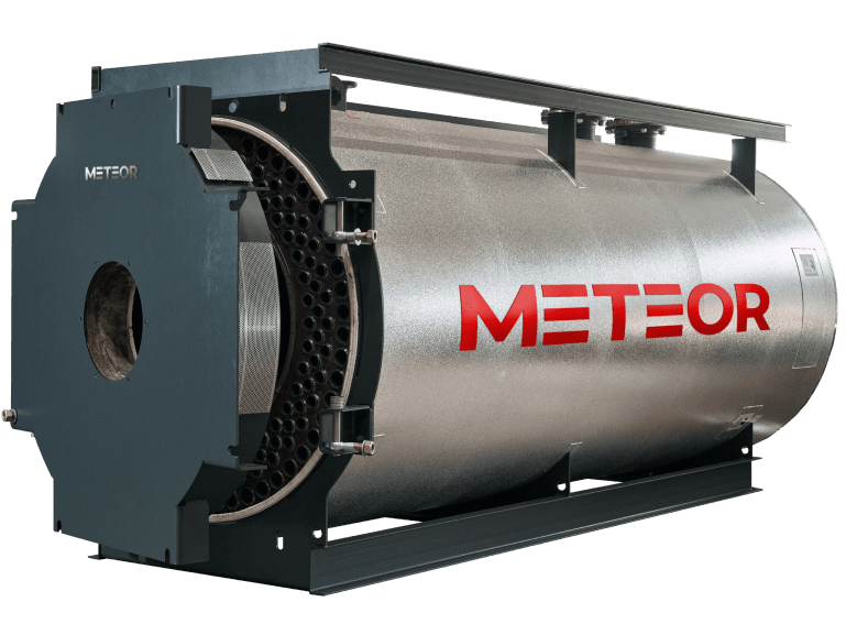 Котёл METEOR UM-5000 - это стальной жаротрубный трехходовой котёл мощностью 5000 кВт. Используется для производства горячей воды с температурой теплоносителя до 170 °C и рабочим давлением до 1 МПа. Котел METEOR UM-5000 - это решение, разработанное для эффективного и стабильного теплоснабжения объектов с повышенной нагрузкой.
