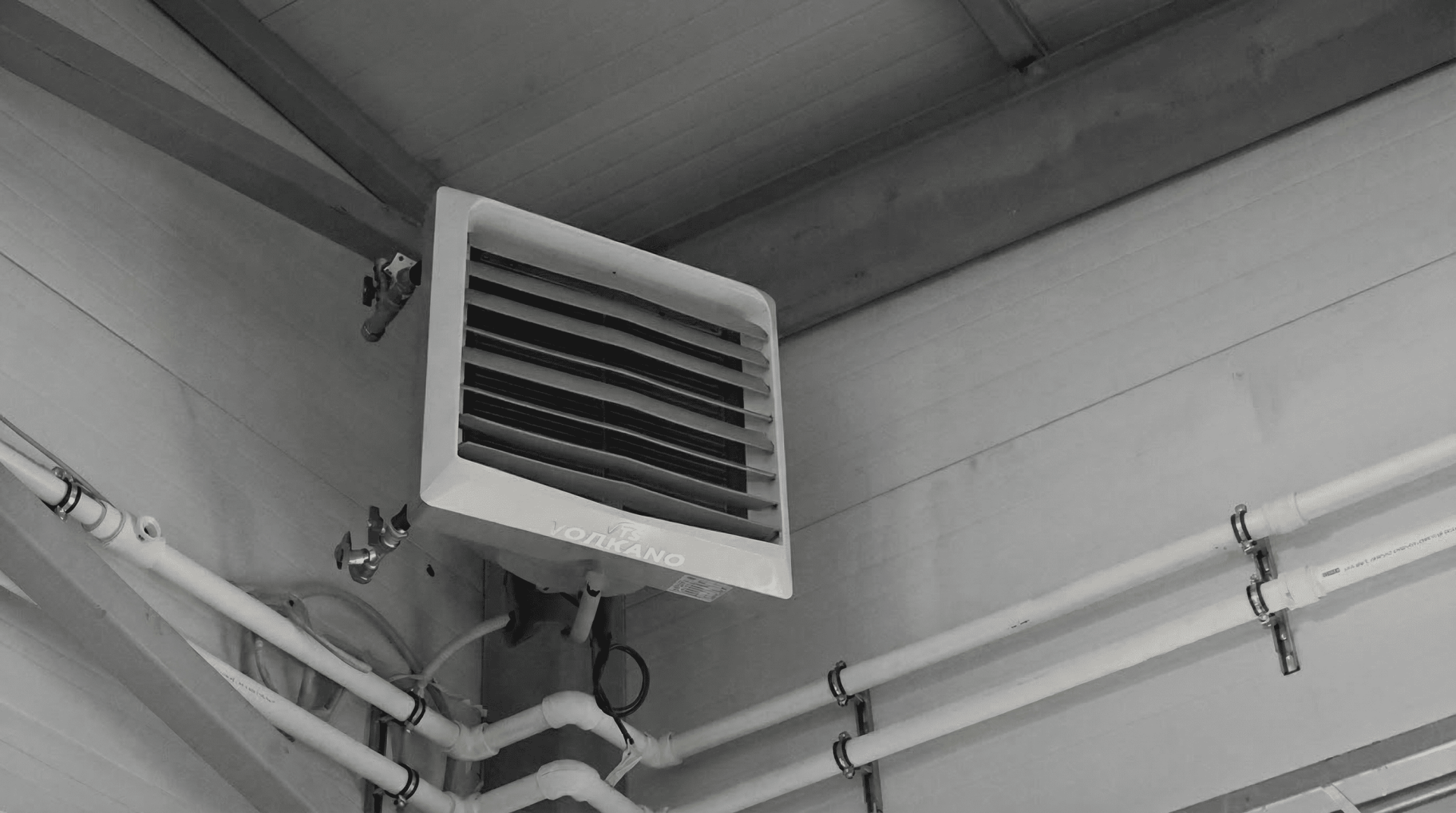 Монтаж воздушного отопления под ключ: установка тепловентиляторов, прокладка трубопроводов с теплоизоляцией, монтаж системы автоматики, пуско-наладочные работы и проверка системы.